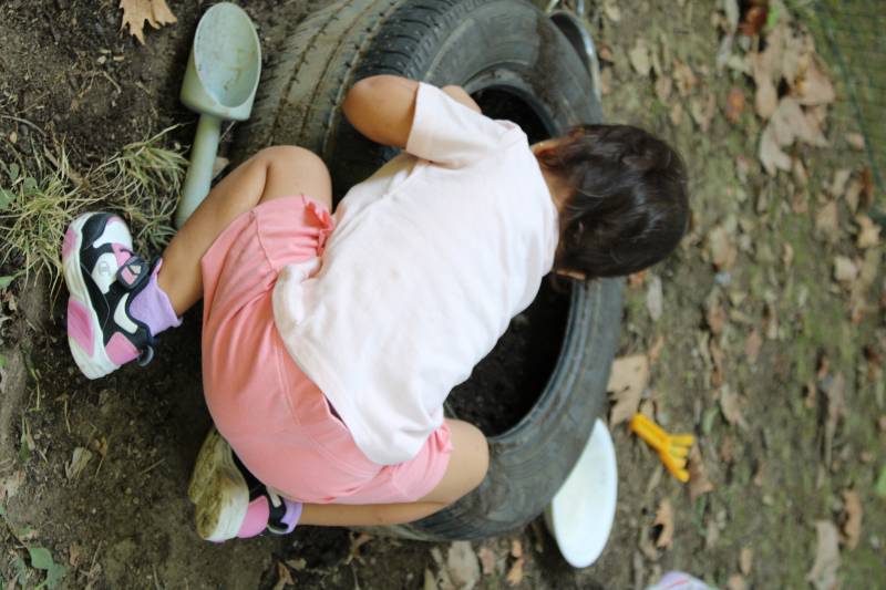 Il giardino, durante l’ambientamento, costituisce uno spazio ricco di potenzialità: offre al bambino un ambiente aperto e accogliente dove può esplorare liberamente, avvicinarsi agli altri in modo graduale e vivere momenti di gioco spontaneo che facilitano l’allontanamento dal genitore. La natura è un luogo prezioso di pace e armonia in cui i bambini ristabiliscono il loro naturale ritmo di adattamento, accompagnato dalla presenza dell’adulto.